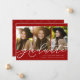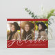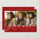 Celebrate your graduate with this three-photo graduation announcement that features a modern and trendy calligraphy script "graduate" on the front in white against a classic red background. The back of the card features a simple geometric pattern in matching scarlet and white. The color can be changed by clicking "customize further."