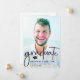 Elegant 2024 graduation announcement features two photos of the college or high school graduate. Graduation Announcement card with handwritten font full bleed portrait photo on the front with name and graduation details. The back has a second photo with additional details. Click the edit button to customize this design.