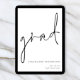 Modern Script Graduation. Available dgitally and printed. This simple monochrome design to announce the news of your graduate has informal set handwriting style script for the main header, grad, and easy to personalise typography to the bottom right hand side with your details and also your message on the back.