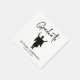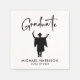 Custom black and white napkins for his graduation party party featuring a silhouette illustration of a male graduate celebrating in his cap and gown, "Graduate" in a modern script and his name and class year in simple typography.