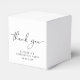 Modern graduation party favor box featuring "Thank You" in a chic script and the grad's name and party date in simple typography.