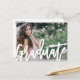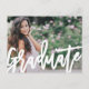 Modern script graduation announcement postcard. Completely customize all the information and photo .