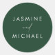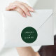 Seal your wedding envelopes with these simple and stylish envelope seals! The design features your names in modern white lettering complemented by a handwritten script with a forest green background. These chic green wedding stickers are perfect for sealing envelopes, adding to wedding favors, and more!