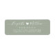 Modern, Elegant Dusty Sage Green Hand Lettered Wedding Return Address Labels. Featuring a beautiful hand-written script bride and groom's first name template with swash-tail font and little heart shape between the names on dusty sage green, or olive green background. Easy to personalize them with your names and return address info.