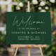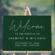 Welcome your wedding guests with this simple and elegant wedding welcome acrylic sign! The horizontal wedding welcome sign features a handwritten white script with a hunter green acrylic background. Personalize the dark green welcome sign with your names, wedding date, and city/state. The acrylic wedding welcome sign is ideal for your contemporary wedding.