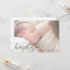 This minimalist, elegant Baptism invitation card features a single horizontal photo, a "baptism´´ header in the modern, handwritten script, and your baby´s name in elegant typography at the bottom. The reverse features all details. Customize this minimalist, elegant baptism invitation card by clicking on the ´´Edit´´ button and replacing the template text and photo with your own!