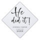 Modern Script He Did It Name Graduation. Simple black and white style, with He Did It in an informal modern script and easily personalise with your grad's name and year. Text and background can be changed to another color if you wish.