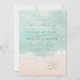 Beautiful turquoise abstract watercolor sparkling ocean wave and hearts in the sand beach background, toped with stylish script and elegant serif font, modern and simple. Great wedding invitation for nautical beach wedding, tropical destination wedding, coastal ocean themed wedding in summer.
