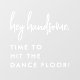 Modern wedding bathroom mirror decal with the text "hey handsome, time to hit the dance floor!" Modern white script font wedding bathroom mirror decal. Colors can be changed in the design tool if you like! Please adjust the font size and text placement in the design tool if you pick another size or orientation.