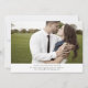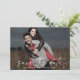 This modern script horizontal dark photo save the date card is perfect for a minimalist wedding. The simple black and white design features unique industrial lettering typography with modern boho style. Customizable in any color. Keep the design minimal and elegant, as is, or personalize it by adding your own graphics and artwork.
