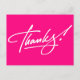 Modern handwritten script Thank You postcards in Hot Pink. Perfect for Weddings, Birthdays, Christmas, Showers or any other occasion. Hot Pink color 'Thank You' postcards, if required, choose any other color or add your own printed text, address or company name from the "Customize It" tab.