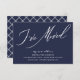Navy blue I've moved new address announcement featuring a modern script font with a coordinating plaid back for an extra touch.