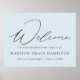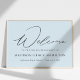 Elegant graduation sign featuring "Welcome" in a black modern calligraphy script with a light blue background (or color of your choice). Personalize the modern graduation poster by adding the graduate's name, school name, and graduation year. The light blue graduation sign is perfect for both high school and college graduates.