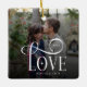Modern Script Love Custom Engaged Couples Photo Ceramic Ornament