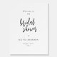 Modern chic script minimalist bridal shower welcome sign in charcoal black and white, simple and elegant.