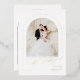 Minimalist wedding invitation features modern script and chic arch frame in real gold foil, with couple's photo, elegant and simple, great for modern classy wedding.