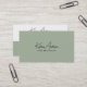 This modern and minimalist business card design features a sophisticated two-tone layout with a sage green and crisp white color scheme. The front showcases a sleek, handwritten-style name or business name in an elegant script font, paired with a clean, professional sans-serif font. The back maintains a cohesive aesthetic, incorporating essential contact details, a scannable QR code for easy digital access, and social media icons (use the design tool to remove any irrelevant icons) for a contemporary touch. Perfect for professionals, entrepreneurs, and creatives, this stylish and customizable design exudes professionalism and elegance while maintaining a modern, approachable feel.