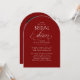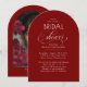 Set the unique tone for your romantic celebration with this burgundy red arch-shaped bridal shower photo invitation. Deep red background, and flowing calligraphy create an elegant, intimate feel, while the option to feature a photo on the back adds a personal and modern touch of luxury.