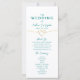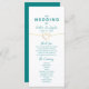 Typography, minimalist, modern double-sided white and green teal wedding program with gold rope heart and simple handwritten calligraphy script.