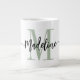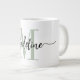 Elegant, modern giant coffee mug with your custom name and monogram in a trendy hand lettered script calligraphy design in minimalist dusty light sage green and black, this large typography driven design makes a great gift for coworkers, teachers, coaches, girlfriends, boyfriends, wives, daughters, or any other work or family member! Great for the office or home decor this super sized XL Jumbo mug makes a fun, stylish present for any birthday or appreciation thank you!