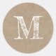 Modern Script Monogram Initial Kraft Classic Round Sticker