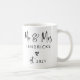 This modern, trendy black and white mug features your last name and cool, hand lettered script that says "Mr & Mrs", along with a scribbled heart. A chic and elegant wedding keepsake for the newlyweds!