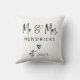This modern, trendy black and white pillow features your last name and cool, hand lettered script that says "Mr & Mrs", along with a scribbled heart. A chic and elegant wedding keepsake for the newlyweds that will fit perfectly with any decor!