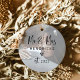 This modern, trendy photo Christmas ornament features your last name and cool, hand lettered script that says "Mr & Mrs", along with a scribbled heart. You can add two of your favorite wedding photos, one on the front and one on the back. A chic and elegant wedding keepsake for the newlyweds that will fit perfectly with any holiday decor!