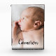 Modern Name Script Baby Vertical Photo Block - When we started having children my parents and in-laws kept asking for more photos of the baby. It's one thing to send them digital images, but a framed keepsake with a beautiful shot and baby's name is another. I was inspired to design this baby photo block for all the proud parents, godparents, uncles, aunts and grandparents out there. Display this elegant gift on your desk or mantel. Personalize baby's name and photo.