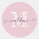 Modern Script Name Monogram Initial Parfait Pink Classic Round Sticker