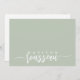 A chic personalized stationery flat note card featuring your name in a white brush script with decorative swashes on a sage green background. Modern simple elegance.