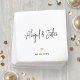Add an elegant personalized touch to wedding reception decorations with custom monogrammed paper napkins. All text on this template is simple to personalize for a wedding, engagement party, couple's bridal shower, anniversary or other occasion. The names can be customized as initials or other text of your choice. The black, white and gold design features modern trendy handwritten script calligraphy and minimalist classic typography. Please note that gold is printed color not metallic foil. These stylish cocktail napkins add a unique customized touch to a special day celebration. Congratulations to the bride and groom!