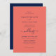 Modern Script Navy Blue and Coral Wedding Invitation