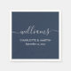 Elegant navy blue and silver wedding paper napkins with a modern script font. Easily personalize online with your wedding details. Matching items available to complement these minimalist, yet elegant navy blue and silver wedding paper napkins.