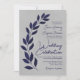 Modern Script Navy Blue Leaves on Gray Wedding Invitation