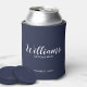 Modern Script Navy Blue Personalized Groomsmen Can Cooler