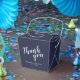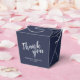 featuring word 'Thank you' in white modern script font with name and date in modern sans serif font on navy blue background.