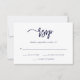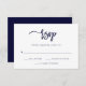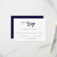This modern, navy and white wedding RSVP card features trendy script typography and a simple and stylish layout.
