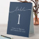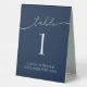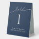 Modern Script Navy Blue Wedding Table Number Table Tent Sign to create an elegant table setting for a classic wedding. Personalize it on the front and back.