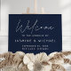 Welcome your wedding guests with this simple and elegant wedding welcome sign! The horizontal wedding welcome sign features a white, handwritten script with a navy background or color of your choice. Personalize the modern wedding welcome sign with your names, wedding date, and city/state. The navy wedding welcome sign is ideal for your modern wedding.