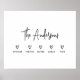 Modern 5 family member script personalized gift fathers day, mothers day, birthday, Christmas, anniversary home decor poster design