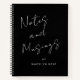 Modern Minimal Black And White notebook, with modern script typography "Notes and Musings" to inspire your creative ideas and thoughts, personalized with your name on the front and your monogram with name on the back. Perfect for journaling or planning. Add your own information by following the "Personalize this template" link.
