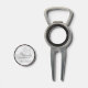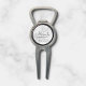 This divot tool features personalized bridesmaid's name in grey modern script font style with title and wedding date in grey modern sans serif font style on white marble background.