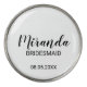 This golf ball marker features personalized bridesmaid's name in black modern script font style with title and wedding date in black modern sans serif font style on white background.