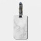 This luggage tag features personalized bridesmaid's name in grey modern script font style with title and wedding date in grey modern sans serif font style on white marble background.