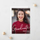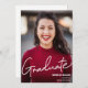 Personalize this modern graduation announcement flat card with your graduate's photo, name, class year, and school name. Include a special greeting on the back, your return address and other details. Modern script font typography, elegant and chic. Share your excitement to family and friends on your grad's accomplishment.