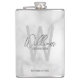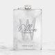 This design features personalized groomsman's name in grey modern handwriting script font style and monogram in light grey modern sans serif font style as background, with wedding details in grey modern sans serif font style, on white marble background.