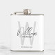 This design features personalized groomsman's name in grey modern handwriting script font style and monogram in light grey modern sans serif font style as background, with wedding details in grey modern sans serif font style, on white background.