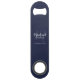 This gift features personalized groomsmen's name in white modern script font style and monogram in light navy blue modern script font style as background with title and wedding date in white modern sans serif font style on navy blue background.