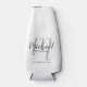 This bottle cooler features personalized groomsmen's name in grey modern script font style and monogram in light grey modern script font style as background with title and wedding date in grey modern sans serif font style.